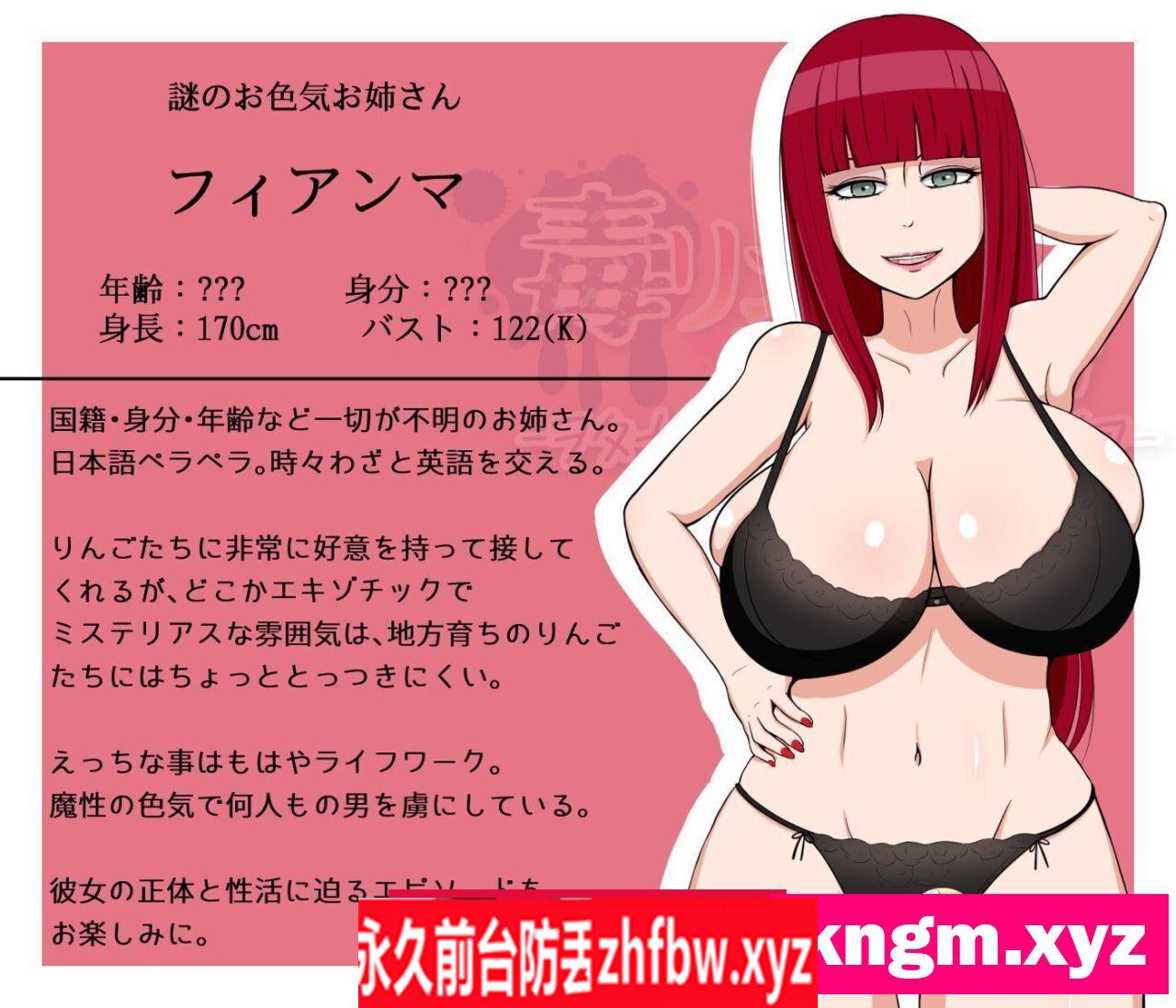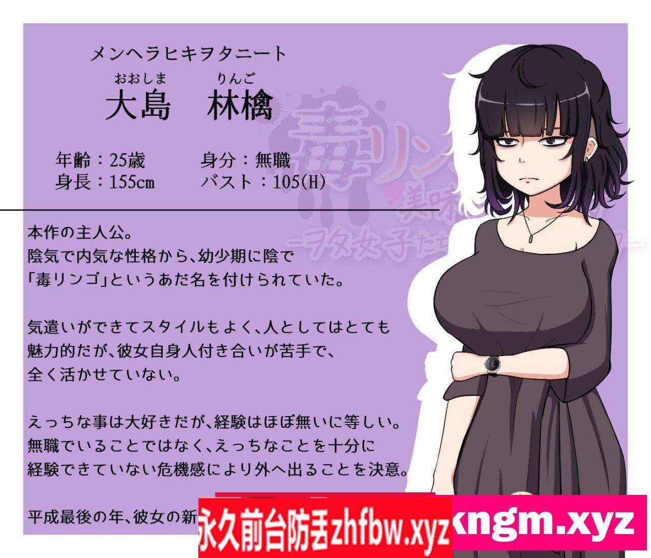 该翻译补丁由[静默无言]大佬制作分享 概要 因名字和阴暗的性格而被起了“毒苹果”这个绰号,25岁的宅女“大岛林檎”。目前无业。 在平成时代的某一天,因性经验极少而感到焦虑,决心改变。 她卷入了唯一的朋友“雏乃”和“桃香”,为了丰富自己的性经验而离家出走。 在那里发生的各种色情事件、邂逅、冲突、事件…… 让我们窥探一下以地方都市为舞台,她们展开的“色情生活”。 内容 这是一款自由探索的RPG,没有路线分支和不可挽回的要素。 ·这是一部将漫画构想融入RPG Maker的作品,游戏性几乎为零,以阅读为主。通关大约需要6~10小时(因人而异)。 ·基本CG数量为56张+α,包括差异在内的总色情CG数量为532张。 ·以温和的女性主导为主,无论是接受还是责备都能享受,多种多样的玩法。 ·所有登场女主角(立绘·色情事件有)共11人。每个人都有性爱·乳交场景。请享受从无乳到爆乳的各种胸部。 ·包含男娘(女装男子)。(为不擅长者提供确认·跳过选项) ·设有回忆室,实现场景回忆和CG回忆的双重功能。到达结局后可完全开放回忆。 人物介绍: